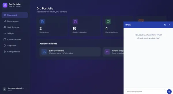 Plataforma RAG multi-tenant completa que permite a empresas desplegar chatbots entrenados con sus propios documentos y web, con widgets personalizables.